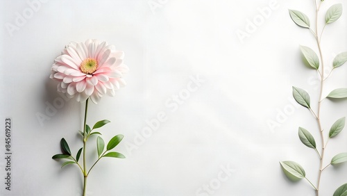 © Oleg Zaharov, Naklejka premium Single aster with leaves on light background, minimalism