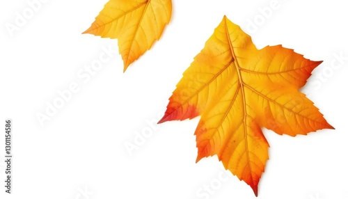 Fototapeta premium Single autumn leaf, isolated on pure white backdrop, image, object