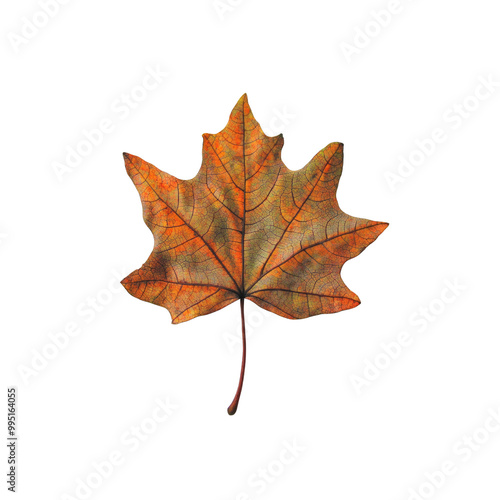 © Designer Kim, Obraz premium Single Autumn Leaf Isolated on White Background