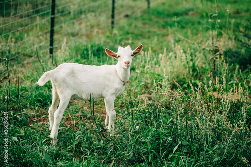 Obraz premium Single Baby young new goat standing alone isolated on a farm