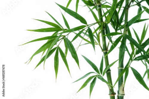 Fototapeta premium Single bamboo leaf on a white backdrop