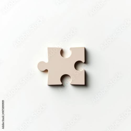 © Narong, Fototapeta premium Single Beige Puzzle Piece on White - Minimalism
