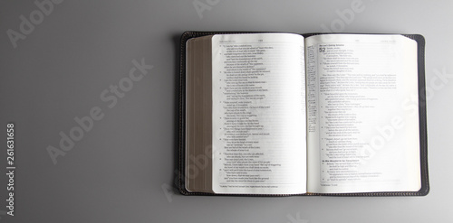Obraz premium Single Bible Open on a Gray Background