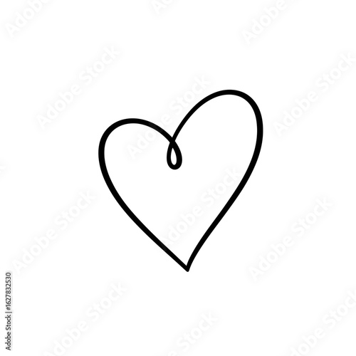Fototapeta premium Single black line drawing of a heart shape on a plain white background