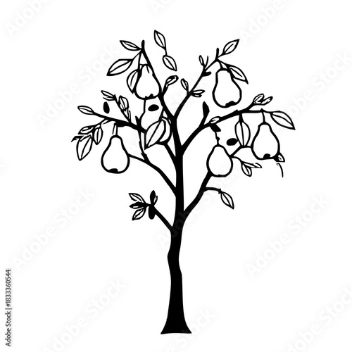 © Rana, Obraz premium Single Black Silhouette Fruit Tree with Pears and