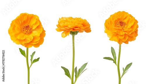 © Moni, Naklejka premium Single blooming orange chrysanthemum flower with stalk isolated on a white background