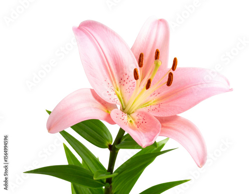 Fototapeta premium Single Blooming Pink Lily Flower with Stem, isolated on transparent background.