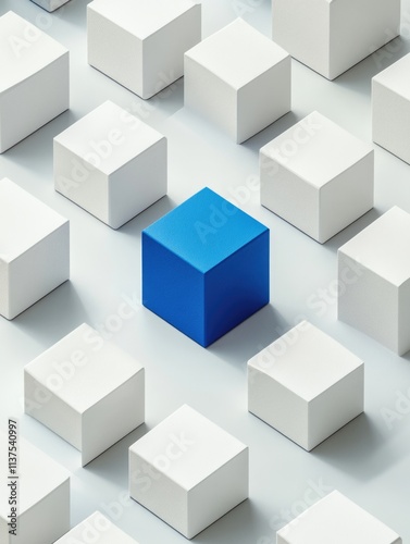 © Goncharenko, Obraz premium Single Blue Cube Among White Cubes