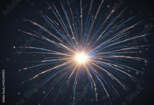 Fototapeta premium Single blue firework exploding, sharp focus, atmospheric , firework, photo,...
