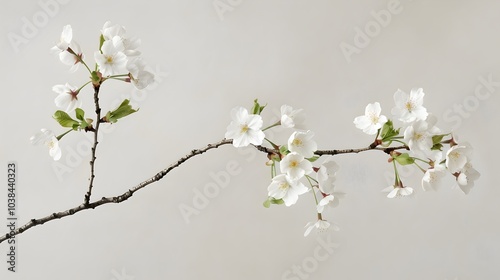 © Radiant Art, Obraz premium Single branch of white cherry blossom flowers isolated, copy space or text space
