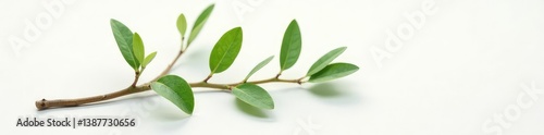Fototapeta premium Single branch on white surface with delicate texture, isolated, single, tree