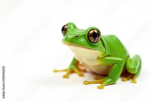 © Sathaporn Buarabut, Obraz premium Single bright green frog on pure white background , specimen, studio