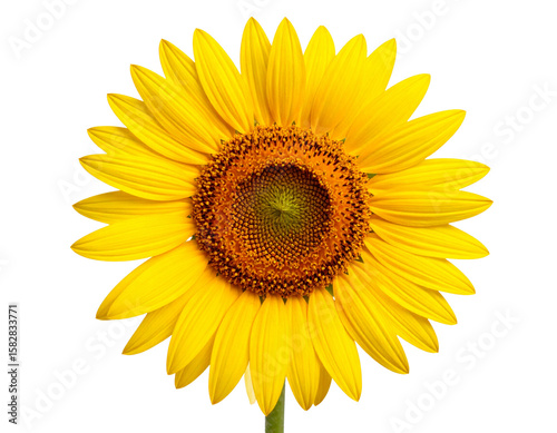 © MdAbdur, Fototapeta premium Single Bright Yellow Sunflower with Leafy Stem – Front-Facing Studio Capture, Transparent Background