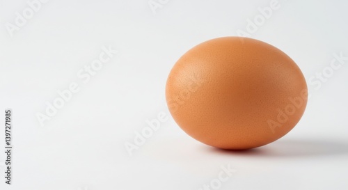 © stock.metket.com, Fototapeta premium Single brown egg on white background with soft shadow and smooth shell surface in studio lighting