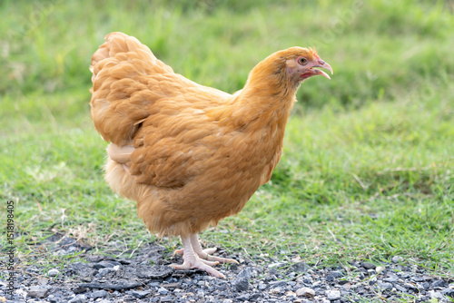 Fototapeta premium Single Buff Orpington Hen Standing on Grass in Natural Light
