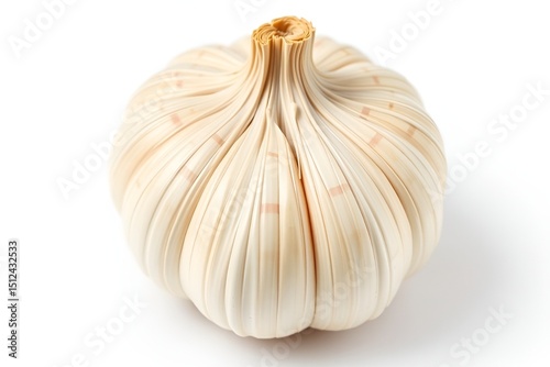 © Md, Obraz premium Single bulb of dried garlic with visible layers and texture isolated on white background