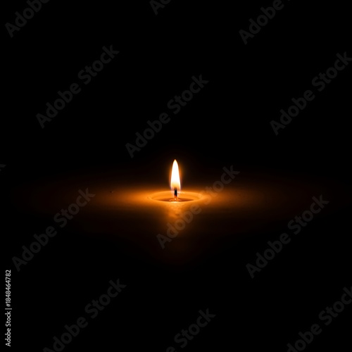 © mhmdyatt, Fototapeta premium Single Candle Flame Burning in Darkness Creating Warm Glow