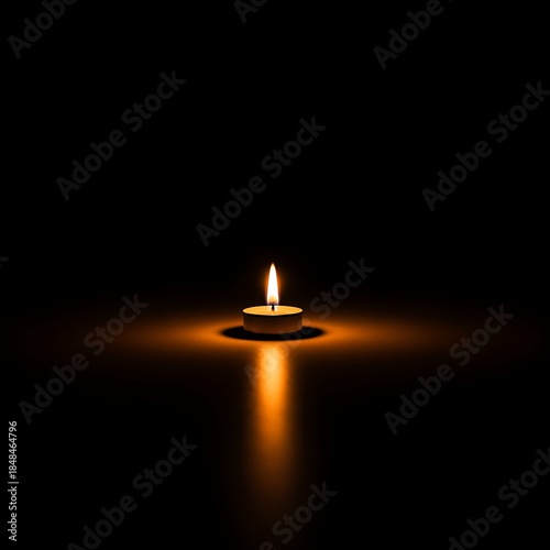 © mhmdyatt, Fototapeta premium Single Candle Flame Burning in Darkness with Reflection