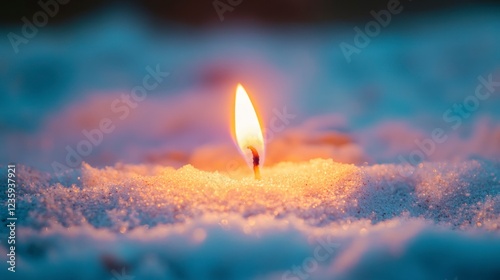 Fototapeta premium Single Candle Flame in Snow Peaceful Winter Scene