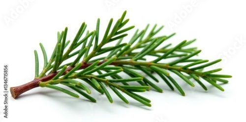 © vilavanh, Fototapeta premium Single cedar branch cut off at the top on a white background, nature, white