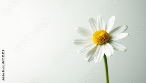 Naklejka premium Single chamomile bloom, pristine white backdrop, isolated, natural