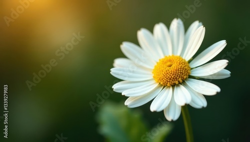Obraz premium Single chamomile blossom, vibrant yellow disc florets , white, organic, yellow