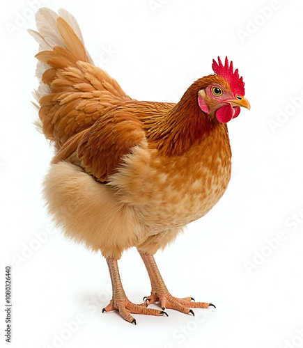 © He, Fototapeta premium Single chicken against white background, golden-brown plumage