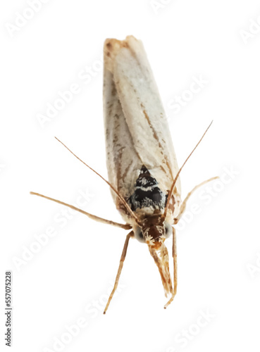 Fototapeta premium Single chrysoteuchia culmella moth isolated on white