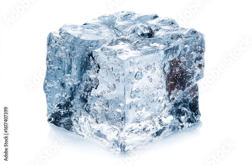Fototapeta premium Single, clear ice cube, slightly irregular, on white background