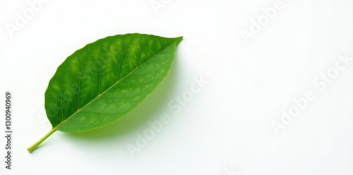 Fototapeta premium Single coffee leaf against a bright white backdrop, leaf, botanical, white