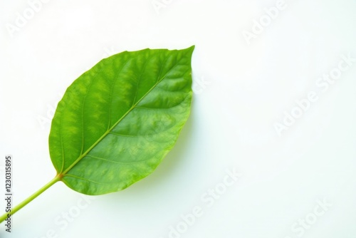 Obraz premium Single coffee leaf against a bright white backdrop, nature, leaf