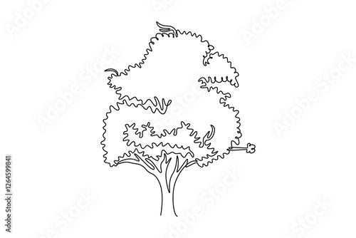 Obraz premium Single continuous line drawing beauty cherry blossom tree for home art wall decor poster. Decorative sakura plant for national park logo. Travel tour. One line draw graphic design vector illustration