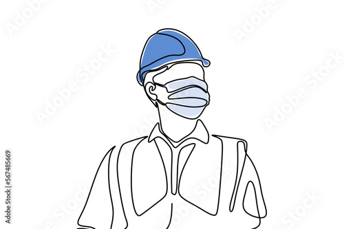 © Natvc, Fototapeta premium Single continuous line drawing of young construction worker. Building architecture business concept. One line draw design vector