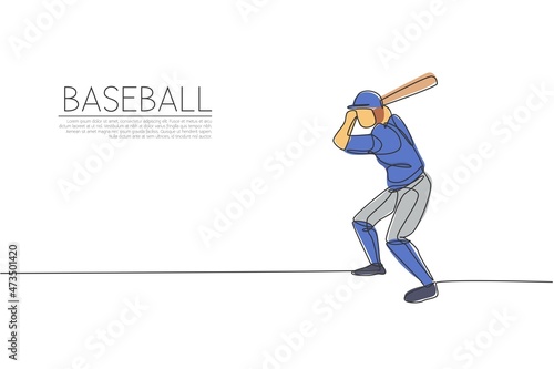 Obraz premium Single continuous line drawing young agile woman baseball player practice to...
