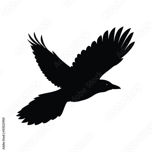 © khan, Obraz premium Single Crow Soaring High Through Peaceful Sky Line Art Vector illustration