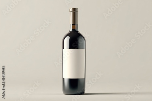 Fototapeta premium Single dark-glass wine bottle with a blank white label against a neutral...