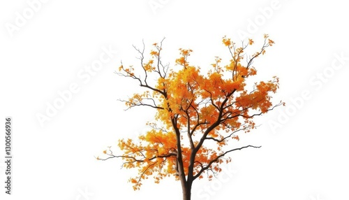© Namwan, Fototapeta premium Single deciduous tree, branches reaching skyward, isolated on pure white, tree, branches