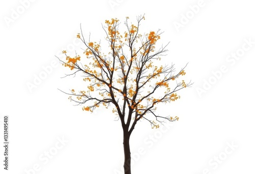 Fototapeta premium Single deciduous tree, branches reaching skyward, stark white background,...