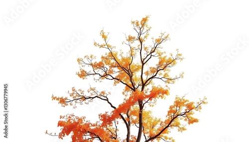 Fototapeta premium Single deciduous tree, branches reaching skyward, stark white background,...