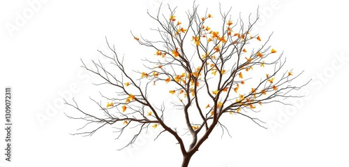 Obraz premium Single deciduous tree, stark branches against bright white, graphic, tree
