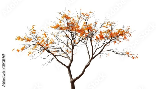 © Phetthanousack, Fototapeta premium Single deciduous tree, stark branches against pure white, isolated, spring