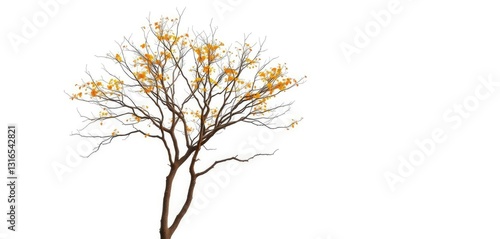 © Uravan, Fototapeta premium Single deciduous tree, stark branches against pure white, tree, peaceful