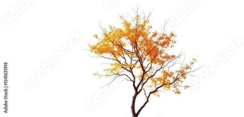 Fototapeta premium Single deciduous tree, stark branches against pure white, white background, botany