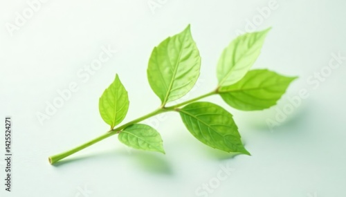 © ຈໍາປາ ຈໍາປາ, Fototapeta premium Single delicate sapling, vibrant green leaves, white backdrop, bright, one