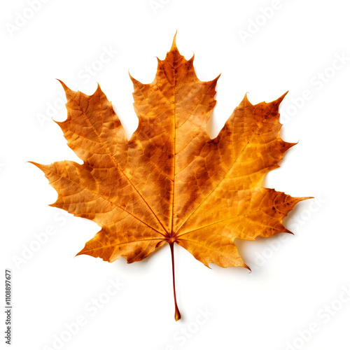 © creative, Fototapeta premium Single dried orange maple leaf isolated on white.