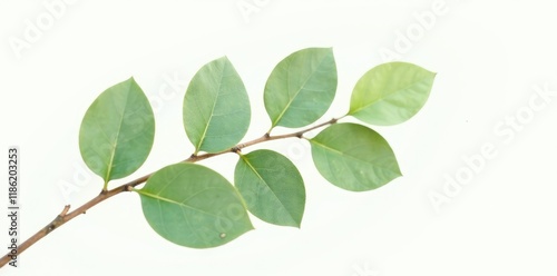 Fototapeta premium Single eucalyptus branch against white background, green, single branch