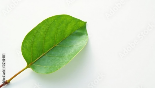 Obraz premium Single eucalyptus leaf on a pure white surface, fresh, leafy