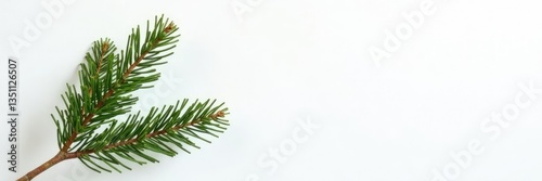 © vilavanh, Naklejka premium Single fir tree branch isolated against a white wall, tree, white