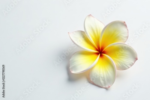 Naklejka premium Single frangipani blossom, pure white background, flora, white, aroma