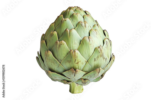 Obraz premium Single fresh green artichoke with detailed texture isolated on white...